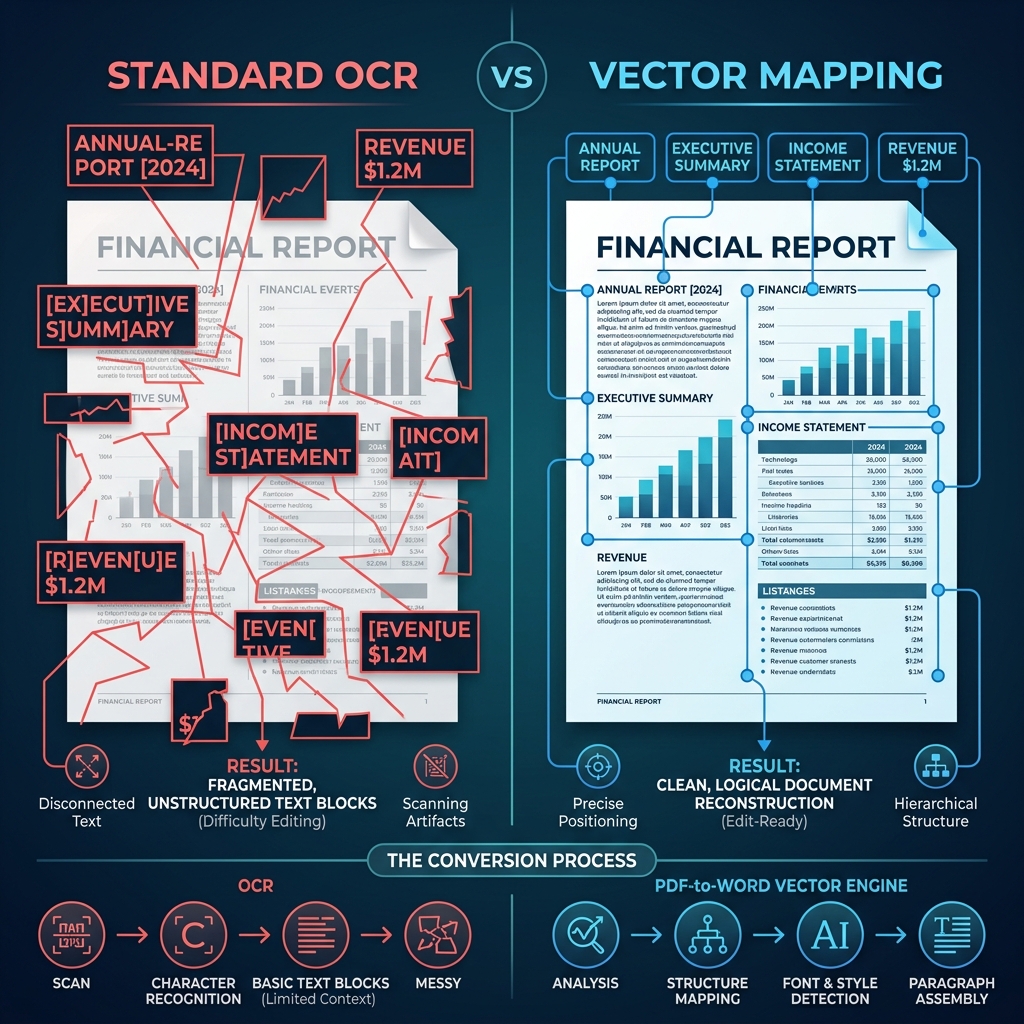 Converting complex PDF layouts into editable Word documents doesn't have to be a failure. By abandoning cloud OCR in favor of local vector reconstruction, you maintain the integrity of your most sensitive technical data. Follow the layers (Z-index), manage your compression settings, and always 'lock' your final draft in PDF format to ensure your professional reputation stays intact across every device.